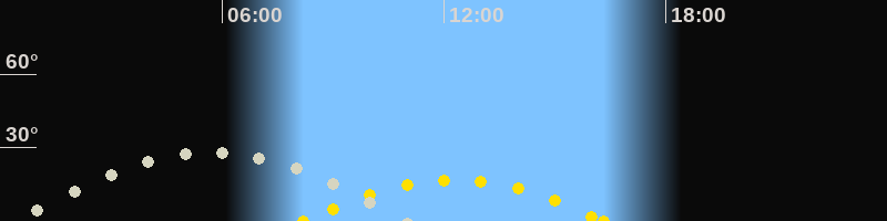 | Höchster Sonnenstand (Kulmination) | 12:16 Uhr (h = 16.9°) |
