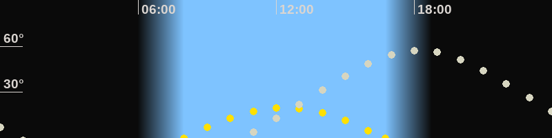 Höchster Sonnenstand (Kulmination)12:22 Uhr (h = 19.9°)
