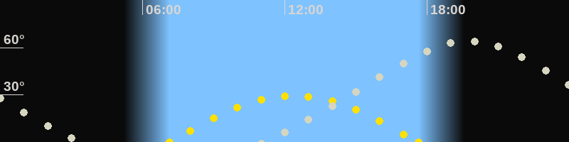 | Höchster Sonnenstand (Kulmination) | 12:23 Uhr (h = 29.5°) |