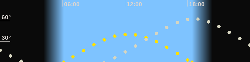 Höchster Stand (Kulmination)18:34 Uhr (h=63.1°)