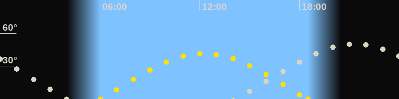 Sonnenaufgang06:01 Uhr im Osten (αAz = 85.9°)