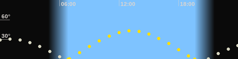 Höchster Sonnenstand (Kulmination)13:14 Uhr (h = 43.1°)