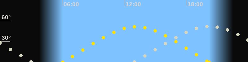 | Sonnenaufgang | 06:03 Uhr im Osten (αAz = 69.8°) |