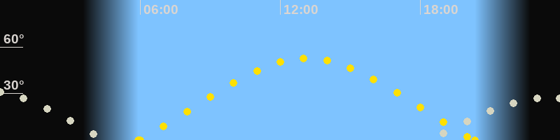 | Sonnenaufgang | 05:55 Uhr im Osten (αAz = 67.7°) |