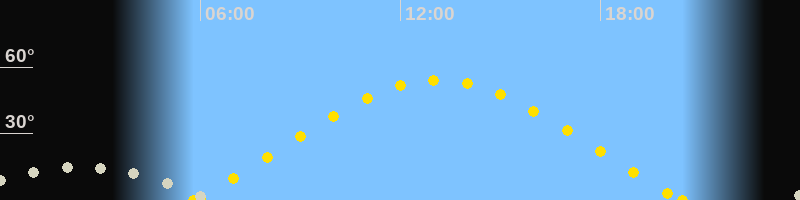 Höchster Sonnenstand (Kulmination)13:07 Uhr (h = 54.1°)