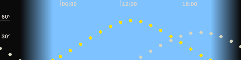 | Höchster Sonnenstand (Kulmination) | 13:06 Uhr (h = 59.5°) |