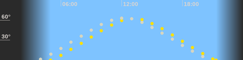 Höchster Sonnenstand (Kulmination)13:09 Uhr (h = 62.4°)