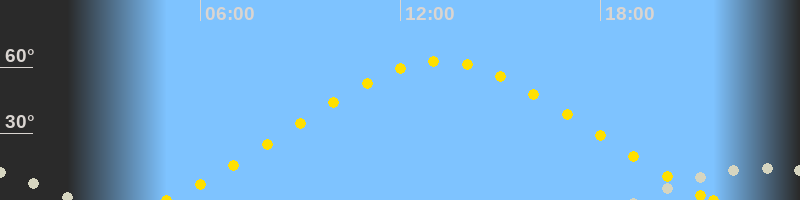| Höchster Sonnenstand (Kulmination) | 13:12 Uhr (h = 62.7°) |