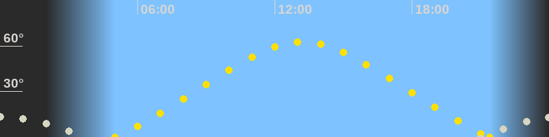 | Höchster Sonnenstand (Kulmination) | 13:12 Uhr (h = 62.7°) |