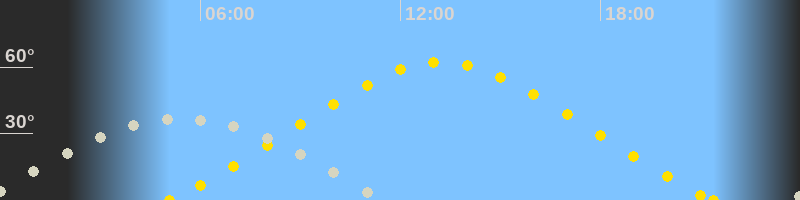 | Höchster Sonnenstand (Kulmination) | 13:14 Uhr (h = 62.3°) |