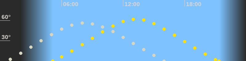 | Höchster Sonnenstand (Kulmination) | 13:15 Uhr (h = 61.9°) |