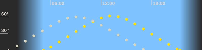| Höchster Sonnenstand (Kulmination) | 13:15 Uhr (h = 61.8°) |