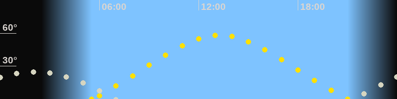 | Höchster Sonnenstand (Kulmination) | 13:16 Uhr (h = 58.4°) |