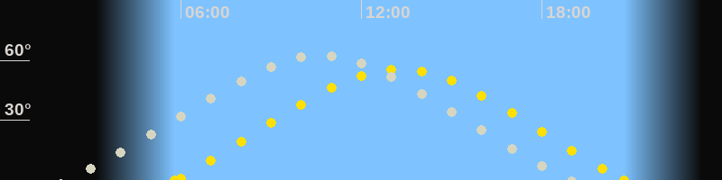 | Höchster Sonnenstand (Kulmination) | 13:16 Uhr (h = 55.6°) |