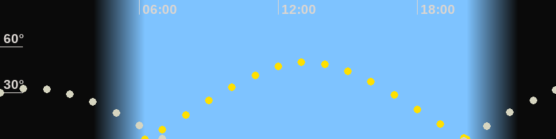 | Sonnenaufgang | 06:14 Uhr im Osten (αAz = 72°) |