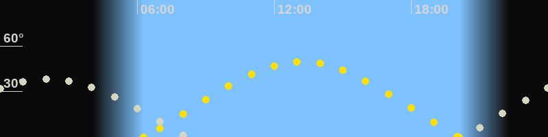 | Sonnenaufgang | 06:16 Uhr im Osten (αAz = 72.6°) |