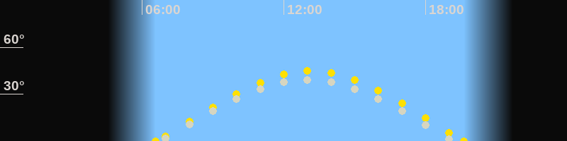 | Höchster Sonnenstand (Kulmination) | 13:07 Uhr (h = 44.9°) |
