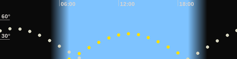 Höchster Sonnenstand (Kulmination)13:02 Uhr (h = 38.7°)