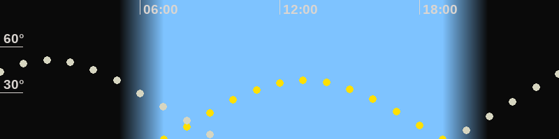| Höchster Sonnenstand (Kulmination) | 13:01 Uhr (h = 38.3°) |