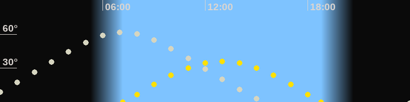 | Höchster Stand (Kulmination) | 07:07 Uhr (h=61.9°) |