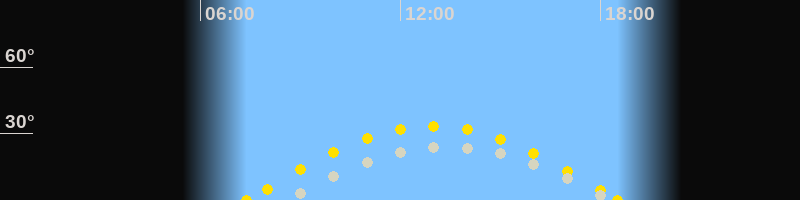| Höchster Stand (Kulmination) | 13:27 Uhr (h=24.3°) |