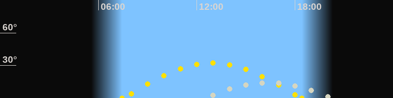 | Höchster Stand (Kulmination) | 16:18 Uhr (h=14.3°) |