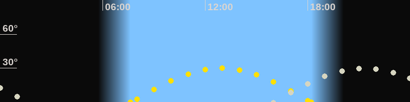 | Höchster Sonnenstand (Kulmination) | 12:55 Uhr (h = 30°) |