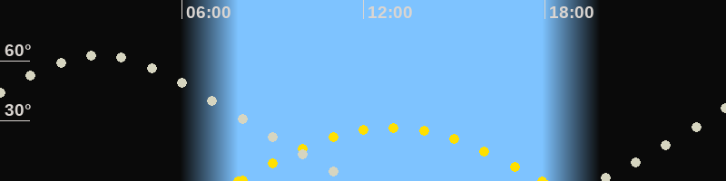 | Höchster Sonnenstand (Kulmination) | 12:54 Uhr (h = 26.8°) |