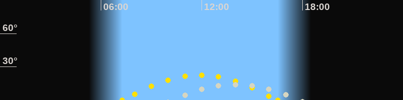 | Sonnenaufgang | 07:15 Uhr im Südosten (αAz = 116°) |