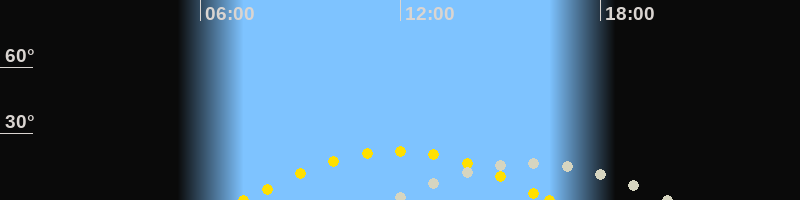 | Höchster Sonnenstand (Kulmination) | 11:54 Uhr (h = 22.1°) |