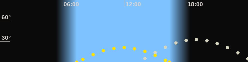 | Höchster Sonnenstand (Kulmination) | 11:54 Uhr (h = 21°) |