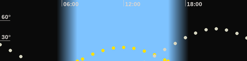 | Höchster Sonnenstand (Kulmination) | 11:55 Uhr (h = 20.2°) |
