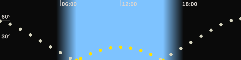 | Höchster Sonnenstand (Kulmination) | 11:56 Uhr (h = 19.3°) |