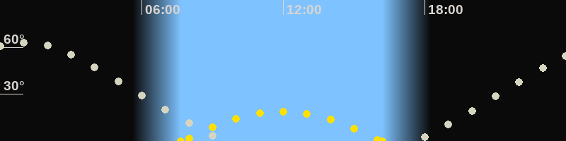 | Höchster Sonnenstand (Kulmination) | 11:56 Uhr (h = 18.9°) |