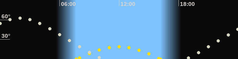 | Höchster Sonnenstand (Kulmination) | 11:56 Uhr (h = 18.7°) |