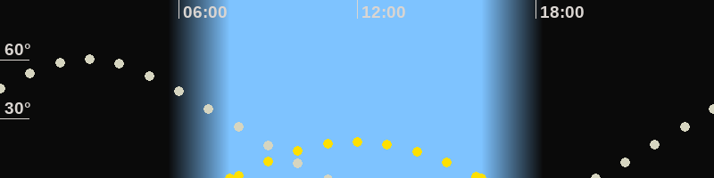 | Höchster Sonnenstand (Kulmination) | 11:57 Uhr (h = 18.5°) |