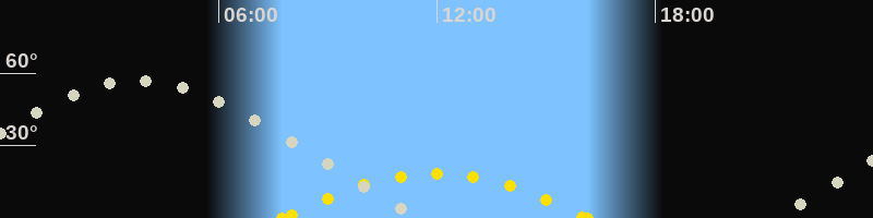 | Höchster Sonnenstand (Kulmination) | 11:57 Uhr (h = 18.3°) |