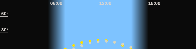 | Höchster Sonnenstand (Kulmination) | 12:01 Uhr (h = 16.8°) |
