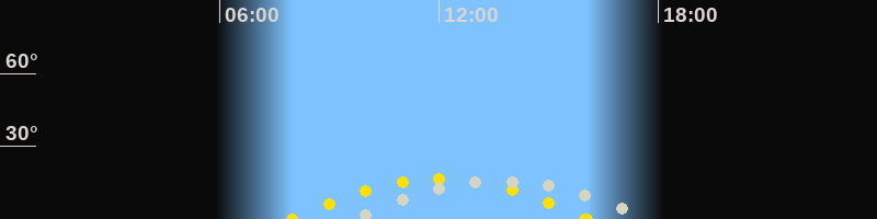 | Höchster Sonnenstand (Kulmination) | 12:01 Uhr (h = 16.6°) |