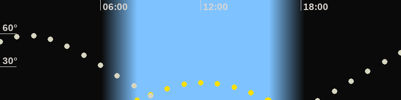 | Höchster Sonnenstand (Kulmination) | 12:09 Uhr (h = 15.8°) |