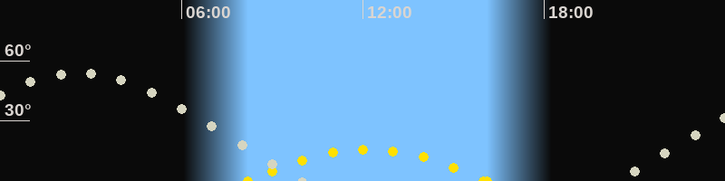 | Höchster Sonnenstand (Kulmination) | 12:09 Uhr (h = 15.9°) |