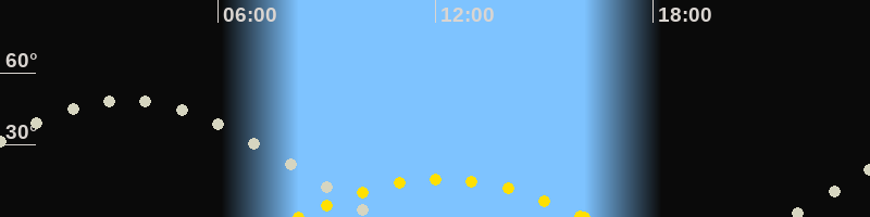 Höchster Sonnenstand (Kulmination)12:10 Uhr (h = 15.9°)