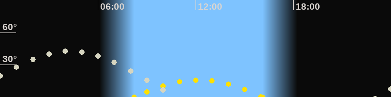 | Höchster Sonnenstand (Kulmination) | 12:10 Uhr (h = 15.9°) |