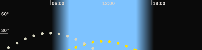 Höchster Sonnenstand (Kulmination)12:11 Uhr (h = 16°)