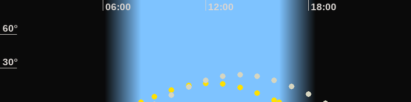 | Höchster Sonnenstand (Kulmination) | 12:15 Uhr (h = 16.8°) |