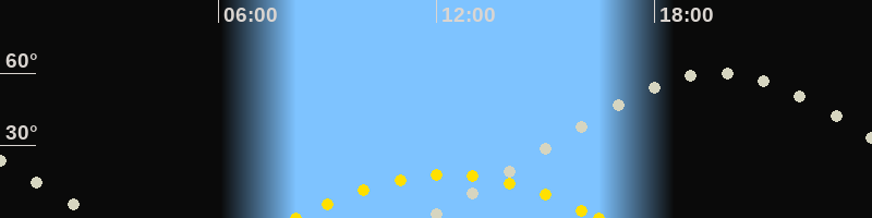 | Höchster Stand (Kulmination) | 19:40 Uhr (h=60°) |