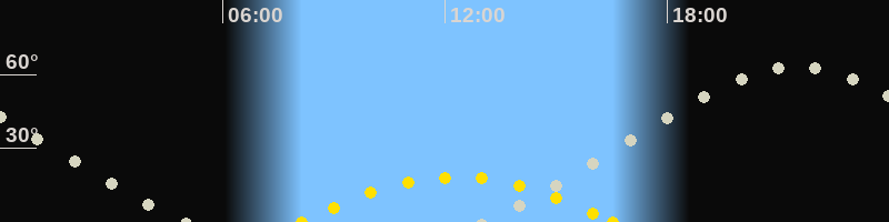 | Höchster Sonnenstand (Kulmination) | 12:19 Uhr (h = 18.3°) |