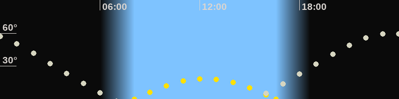 Höchster Sonnenstand (Kulmination)12:20 Uhr (h = 18.7°)
