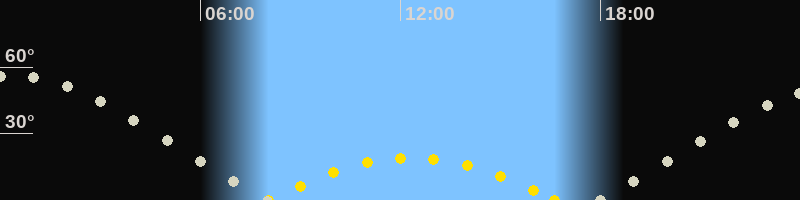 | Höchster Sonnenstand (Kulmination) | 12:21 Uhr (h = 19.1°) |