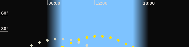 | Höchster Sonnenstand (Kulmination) | 12:23 Uhr (h = 21.1°) |